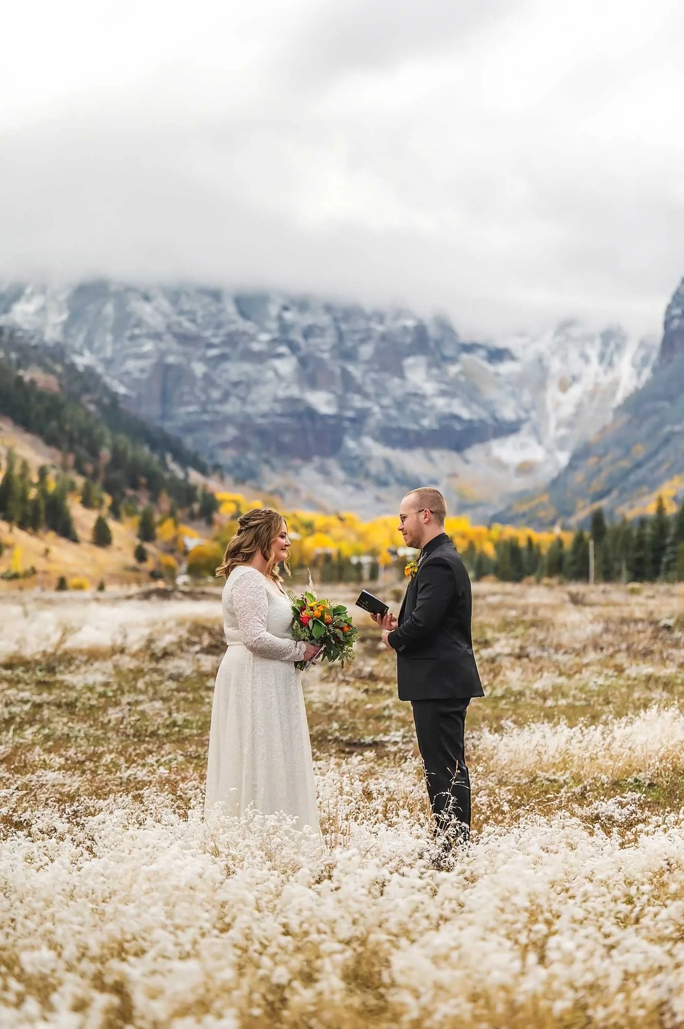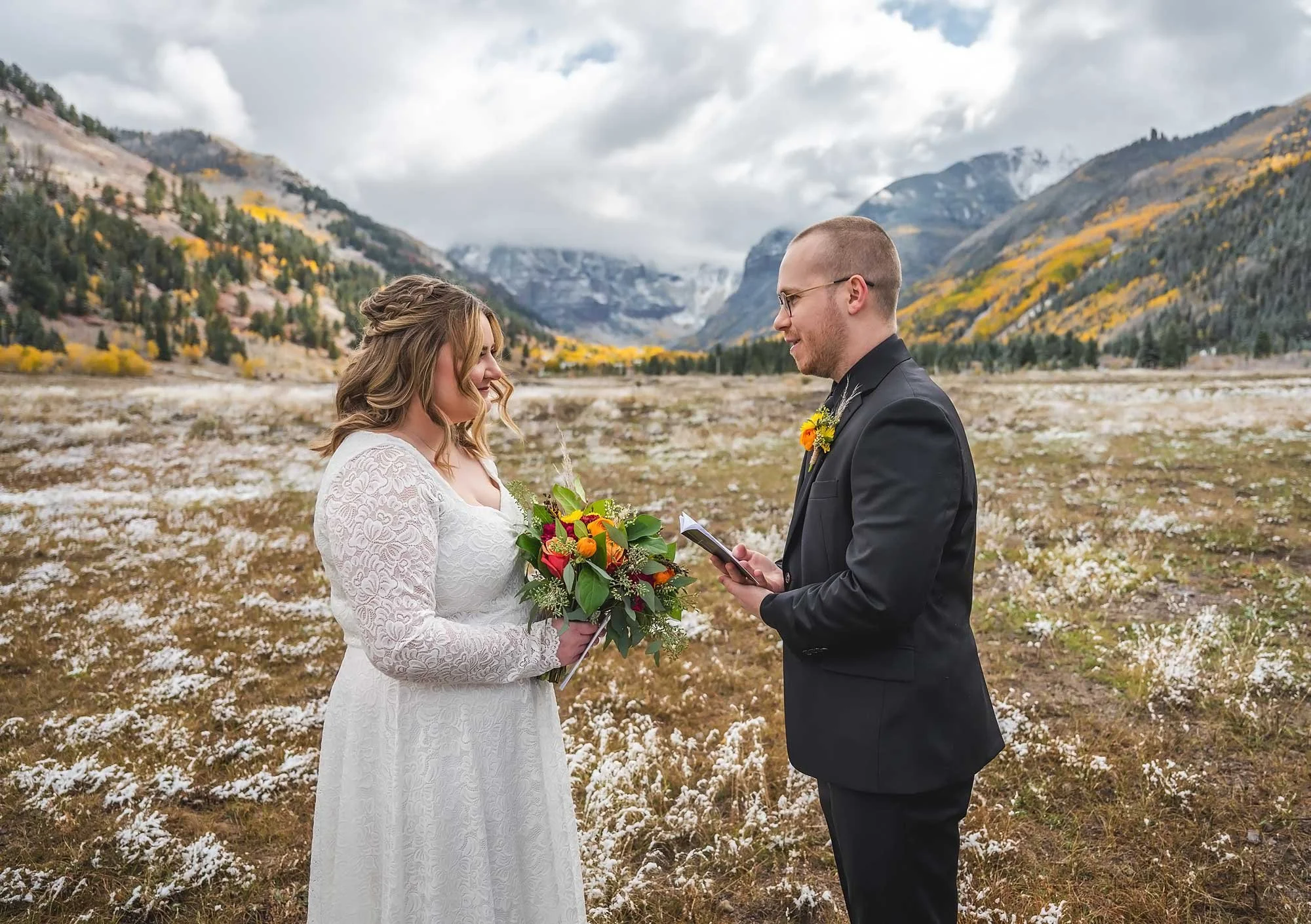 This is an example of what an All-Inclusive Adventure Elopement looks like in Telluride! Lexie didn’t have to worry about booking her hair and make-up or calling a florist, because we did it all for her! They trusted Joe completely to pick beautiful locations and only had to write out some vows to exchange with each other… that’s it! They were also a little shy when it came to pictures, so this will show you how Joe interacts with couples, to get them comfortable in front of the camera.
