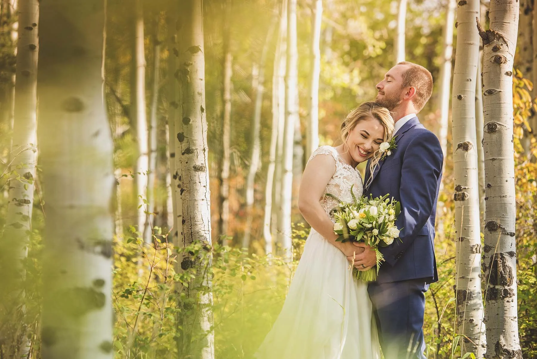 We hopped in Bruiser and drove down to Ouray, Colorado for some epic photos among the yellow Aspen trees and mountains! Sydney’s wedding dress was by Lillian West from Love Struck Bridal Boutique. The fabulous Rachel Maier Makeup did her hair and makeup, and the beautiful bouquet was from Bridal Veil Floral. Stephanie Warner, one of our favorite officiants, oversaw the ceremony. We are always so lucky to work with amazing local vendors!